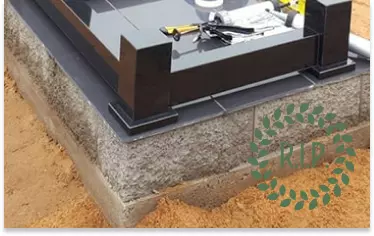 Монтаж памятника по уровню земли , пожалуй, самый бюджетный вариант установки на железобетонные балки.